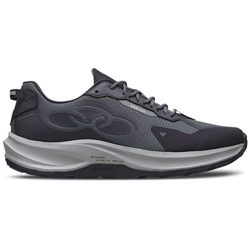 O Olympikus Neblina é um dos nossos lançamentos para a corrida em trilhas. Seu solado possui a tecnologia de amortecimento Evasense, que proporciona leveza, maciez e maior flexibilidade. Com design minimalista e linhas que remetem a velocidade, conta também com a tecnologia Gripper. A borracha antiderrapante proporciona maior aderência e resistência à abrasão, além de garras de tração facetadas e pontiagudas para oferecer aderência em qualquer terreno. Seu cabedal foi desenvolvido com tecido de poliéster resistente e respirável, que proporciona leveza e ventilação adicional, contribuindo para a não absorção de líquidos, com detalhes em high frequency com visual de alto relevo e aplicação gráfica. Conta com forro em tecido poliéster com espuma, atacador de poliéster texturizado bicolor, aplicação de laminado PVC 0.4 disposta em lugares estratégicos para suporte e estrutura adicionais, vista diferenciada com passadores de atacador para melhor ajuste. Possui ainda fita traseira com peça refletiva para segurança noturna e lingueta com tela jacquard com peça em TPU e logotipo em serigrafia. Sua palmilha é plana, composta por tecido poliéster e EVA, com aplicação gráfica. TECNOLOGIA: EVASENSE - A tecnologia da Olympikus em EVA para máxima maciez e conforto absoluto. REFLETIVO - A tecnologia refletiva da Olympikus aplicada em pontos estratégicos para oferecer segurança em atividades noturnas. GRIPPER - A tecnologia da Olympikus com borracha compacta antiderrapante e de alta resistência.