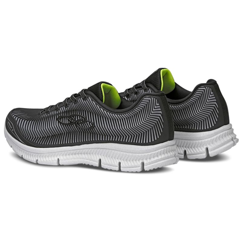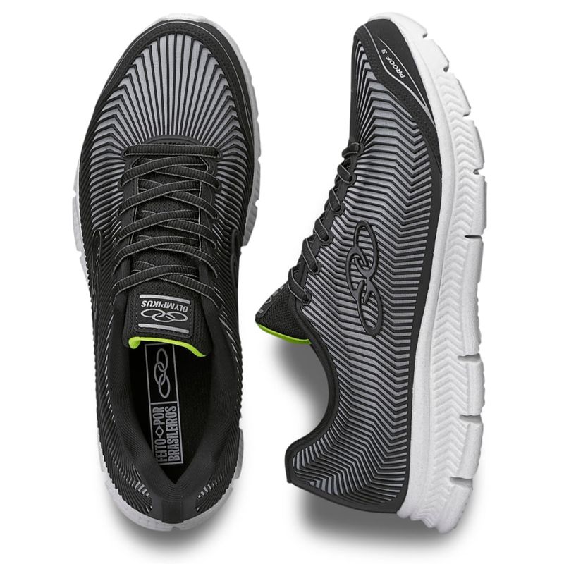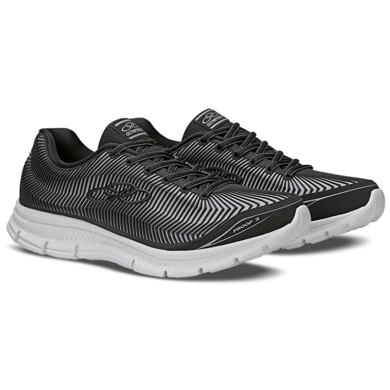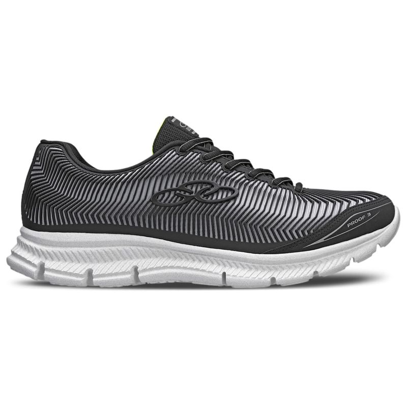 O Olympikus Proof 3 é o tênis ideal para quem busca conforto e alta durabilidade. Seu solado possui design com recortes verticais, que aumentam a flexibilidade, além da tecnologia de amortecimento Evasense, que proporciona leveza e maciez para os corres diários. O cabedal é confeccionado em tecido de poliéster, com a tecnologia Covergrid, o seu material é injetado diretamente no tecido, proporcionando maior proteção, resistência e durabilidade. Possui ainda forro com espuma e atacador bicolor, ambos compostos por tecido poliéster texturizado.