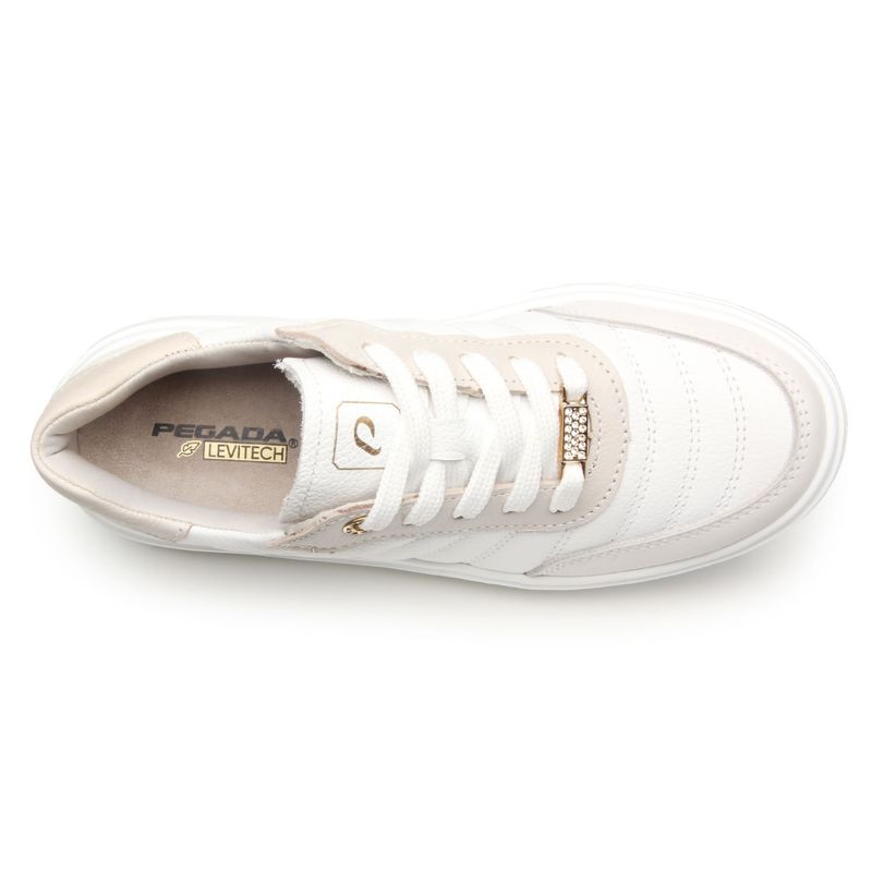Esse tênis em couro branco da linha Eva é super estiloso e confortável. A leveza dos tênis da linha Eva acompanham você em qualquer destino, eles contam com a nossa tecnologia LEVITECH, pesando menos de 250 gramas por pé, o que proporciona muito mais leveza e conforto no caminhar. Sua palmilha é feita em material macio. Já o solado é flatform, uma tendência de estilo e conforto que nunca sai de moda. Sem falar nos detalhes em pedrarias, que dão um charme no visual do calçado. Além de tudo isso, o modelo ainda possui o nosso sistema "CALCE FÁCIL", com cadarço em elástico que não precisa ser amarrado e dá muita praticidade na hora de calçar. É perfeito para as mulheres dinâmicas, que não têm tempo a perder e querem ganhar em estilo, conforto e atitude. Leveza tem nome, conheça a linha Eva da Pegada.
