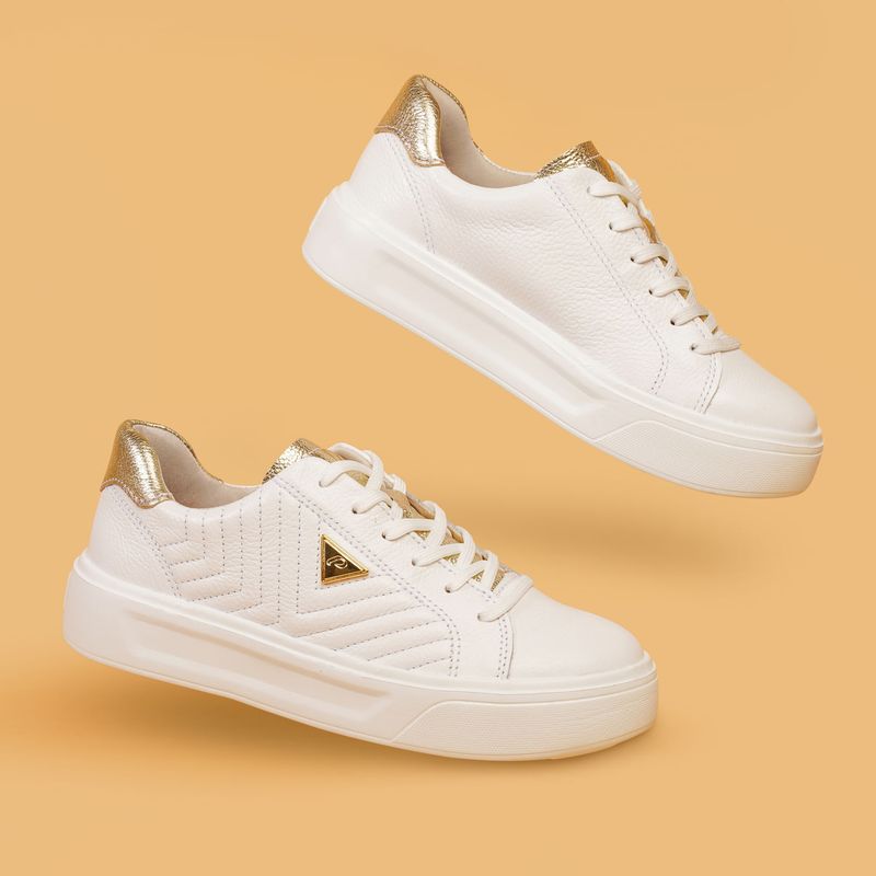 Tênis Pegada Feminino em Couro Branco 211220-01