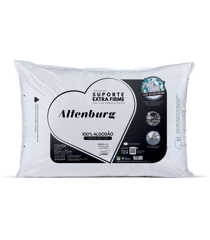 Travesseiro Suporte Extra Firme ideal para quem busca um travesseio firme sem deixar de lado o conforto. Indicado para quem dorme de lado, o Travesseiro Extra Firme possui revestimento em percal 180 fios, 100% algodão, e seu recheio é composto por fibra de poliéster. É inodoro e não-alérgico e ainda pode ser lavado e secado em máquina.