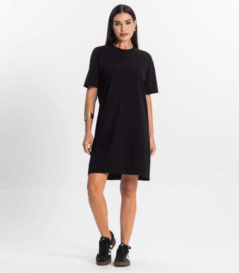 O Vestido Básico Feminino Rovitex é confeccionado em Meia Malha, um tecido leve e macio que proporciona conforto e um caimento soltinho. Com modelagem T-shirt, a peça traz um visual despojado e moderno. O decote redondo em friso garante um acabamento delicado, enquanto os ombros levemente deslocados e as mangas curtas conferem um toque estiloso e descontraído. Seu comprimento acima do joelho torna o vestido ideal para composições versáteis, perfeitas para qualquer ocasião.