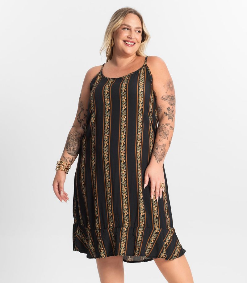 O Vestido Curto Secret Glam, confeccionado em viscose Kyhara estampada, oferece charme e sofisticação. Seu decote apresenta acabamento em friso, proporcionando um toque delicado e estruturado. As cavas seguem o mesmo detalhe, garantindo um caimento confortável. Nas costas, um cordão permite a criação de um laço sutil, com aplicação de ponteira que adiciona elegância, enquanto o recorte valoriza a peça. Com etiqueta interna discreta, o vestido combina estilo e praticidade para diversas ocasiões.