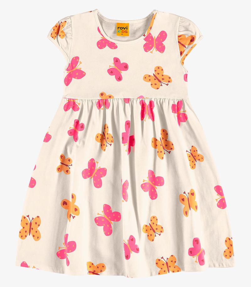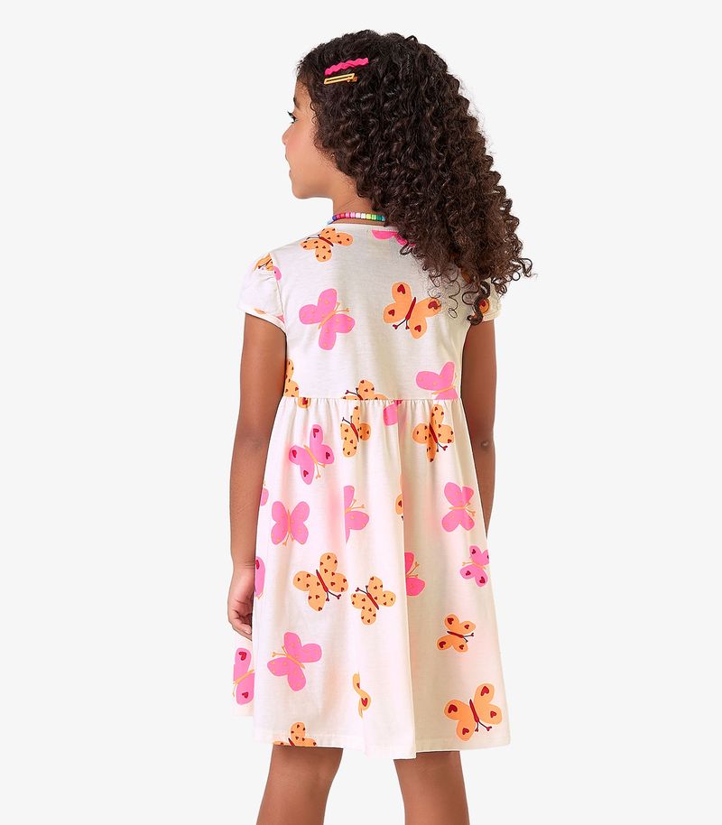 Vestido infantil feminino confeccionado em meia malha, ideal para oferecer conforto e liberdade nos movimentos. Possui estampa rotativa alegre e delicada. O modelo conta com recorte franzido na cintura, que proporciona um caimento soltinho. O decote e as mangas têm acabamento com friso para mais charme e firmeza. O franzido localizado na parte superior valoriza o visual. A barra tem acabamento com costura dupla, garantindo durabilidade e um toque bem acabado à peça.