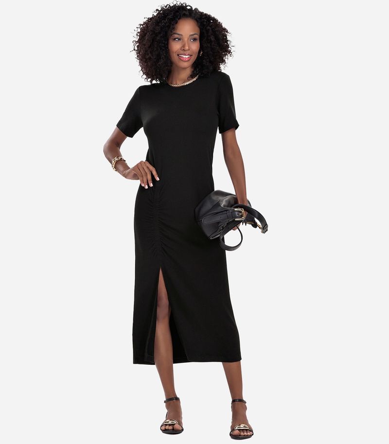 O Vestido Feminino Molecotton Midi Rovitex é a escolha perfeita para quem busca conforto e estilo. Confeccionado em molecotton de viscose, oferece toque macio, caimento leve e flexibilidade. A gola redonda em ribana garante um acabamento clássico e confortável. O destaque fica por conta do detalhe frontal com costura fixa de elástico em túnel, que valoriza a silhueta e cria um charme extra. Logo abaixo, a abertura de fenda traz um toque moderno e elegante, ideal para diversas ocasiões.