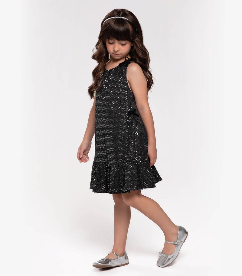 O Vestido Infantil em Lantejoula Trick Nick é a escolha perfeita para ocasiões especiais. Confeccionado em malha lantejoula glow, o vestido brilha com um toque encantador. Possui laços em veludo que adicionam um detalhe sofisticado, e o decote com franzido e babado com franzido conferem um estilo romântico e elegante. Com forro interno, oferece conforto e uma caimento impecável. Ideal para festas e eventos, esse vestido é um verdadeiro destaque no guarda-roupa das pequenas.