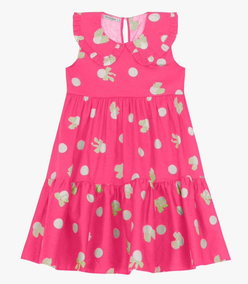 Vestido Infantil Trick Nick confeccionado em Popeline, leve e delicado. Possui babado embutido no forro, com acabamento franzido que dá charme à peça. A cintura também é franzida, trazendo volume e conforto. A barra tem bainha fina que valoriza o caimento. Ideal para ocasiões especiais com muito estilo e conforto.
