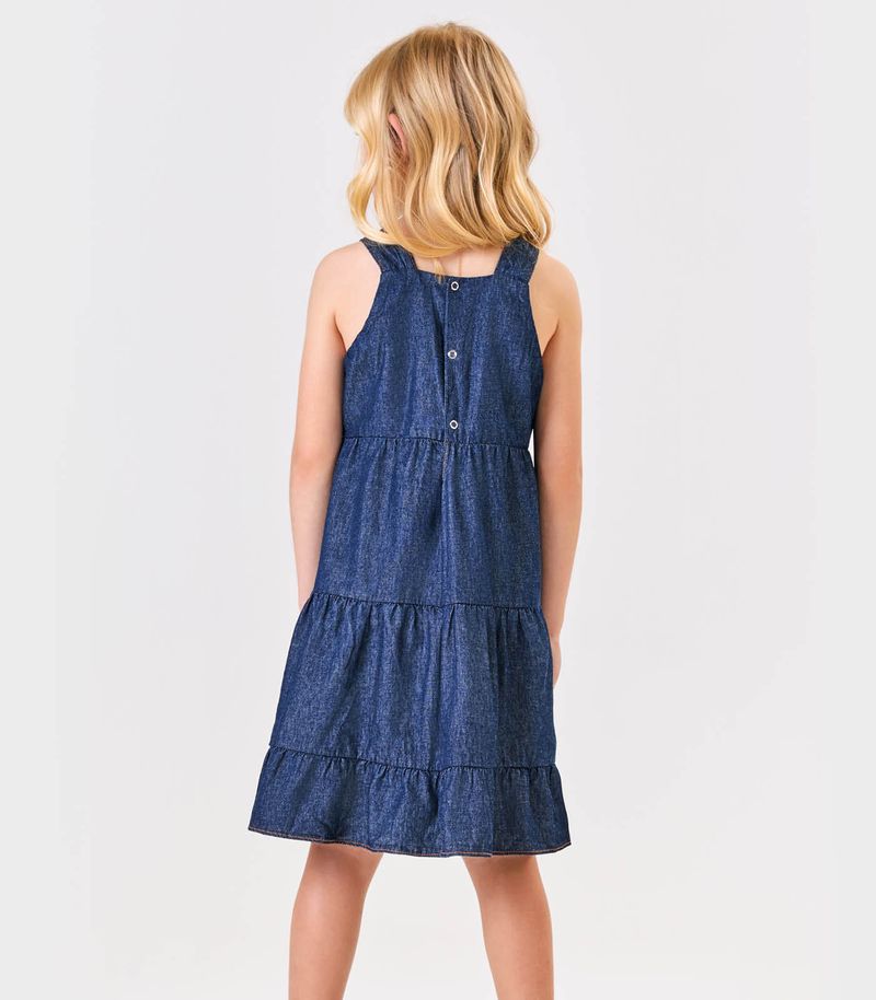 O Vestido Infantil Feminino Trick Nick, feito em jeans, é uma peça encantadora e confortável. Com alças largas, oferece suporte e conforto para o dia a dia. Sua modelagem soltinha e o recorte Marias garantem um caimento delicado e fluído, perfeito para os dias mais quentes. Nas costas, o fechamento por botões adiciona um toque de charme e praticidade, tornando o vestido fácil de vestir. Ideal para ocasiões casuais e para deixar a pequena ainda mais estilosa.