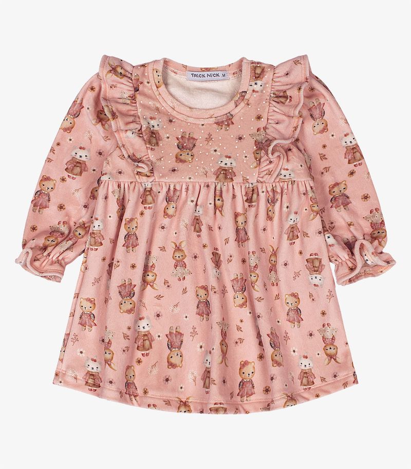 Vestido Infantil Manga Longa Trick Nick Rosa