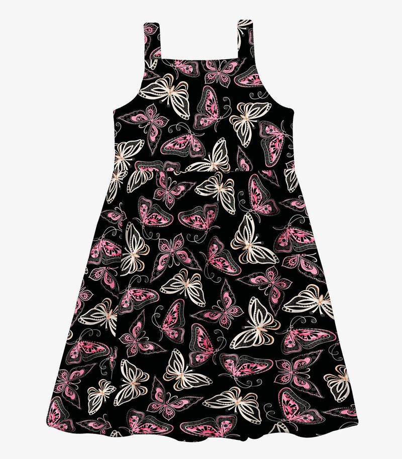 Vestido Menina Popeline Borboletas Trick Nick Preto