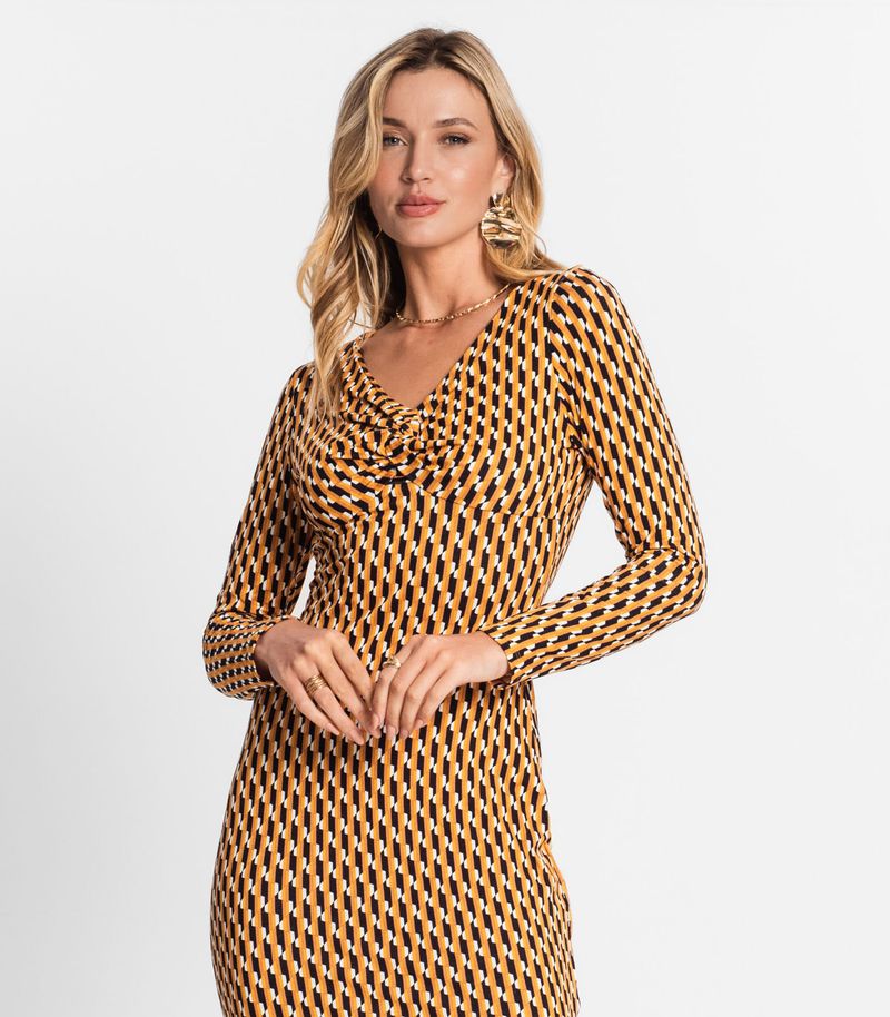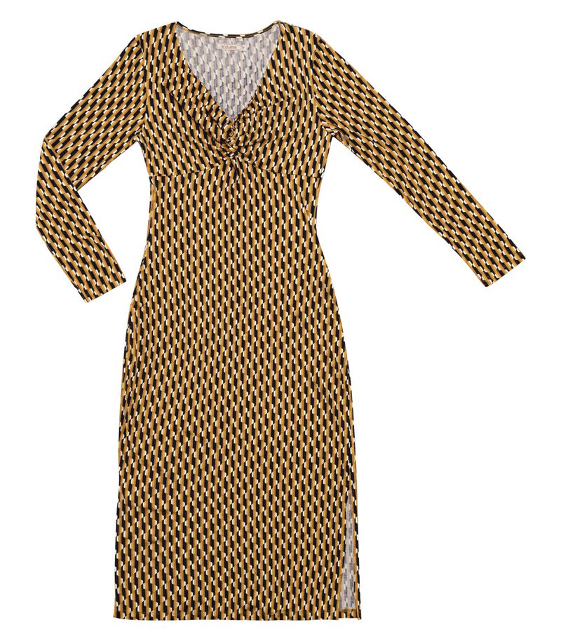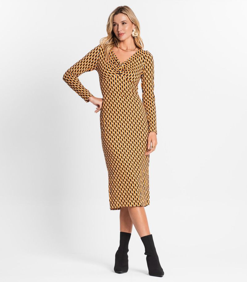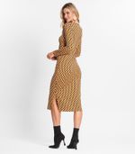 O Vestido Midi Manga Longa Endless é a expressão máxima de elegância e modernidade. Confeccionado em viscose creponada, o tecido proporciona um caimento fluido e confortável. Seu design inovador destaca-se pela frente dupla formando uma torção, conferindo um toque único à peça. A abertura com friso adiciona um elemento charmoso, enquanto a estampa rotativa oferece um visual dinâmico e atual. Com mangas longas, é uma opção versátil para diversas estações.