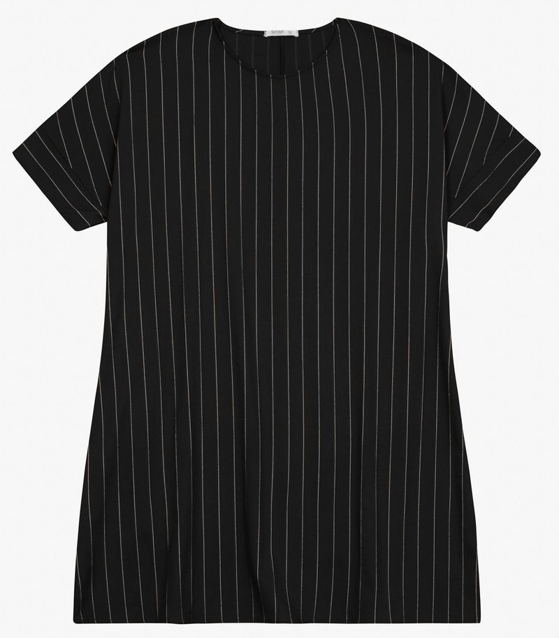 Vestido Plus Size em Visco Listras Secret Glam Preto