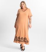 O Vestido Super Midi Plus Size Secret Glam é desenvolvido em Viscose Creponada, garantindo leveza e fluidez ao look. Seu design sofisticado apresenta decote V com retilínea, mangas curtas e fendas laterais, proporcionando movimento e frescor. O toque final fica por conta da estampa localizada na barra, que adiciona charme e exclusividade à peça.